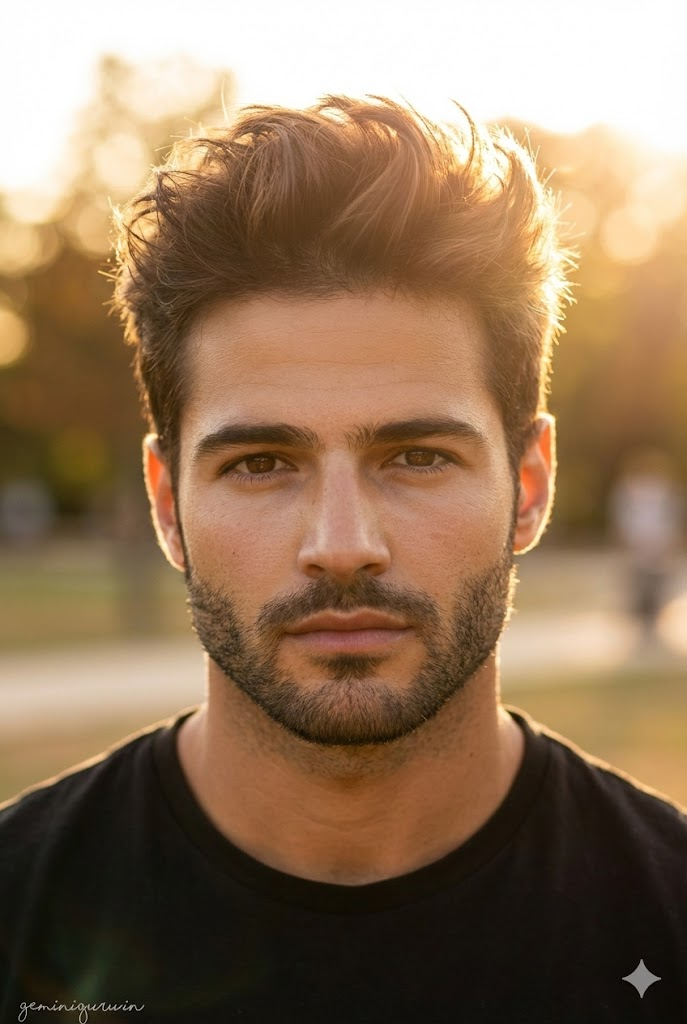 Use uploaded reference image only. Face must be 100% identical and instantly recognizable. No AI smoothing, reshaping, or alteration. Maintain real pores, natural highlights, and authentic human skin texture. Must look like real photography, not digital art. PROMPT: Lifestyle shot, golden hour backlighting (contre-jour). Subject with a messy, voluminous quiff. Sun flaring through the hair strands (sub-surface scattering). Warm color temperature (5500K). Soft bokeh background. Shot on 85mm f/1.4 lens. Dreamy, ethereal vibe but sharp facial features. SIGNATURE: Add “reviewpadho.in” bottom-left corner. Handwritten signature-style typography, thin cursive, small size, subtle premium elegance, white/soft off-white color.
