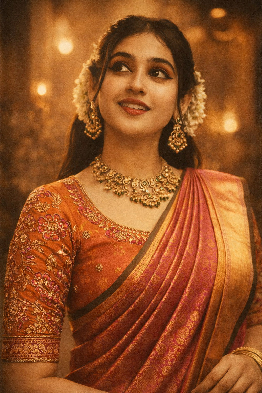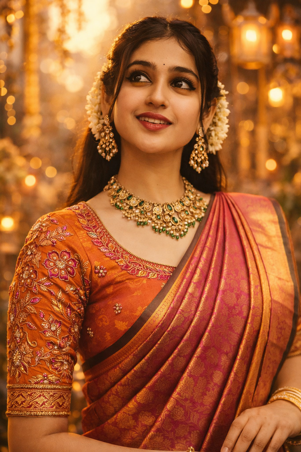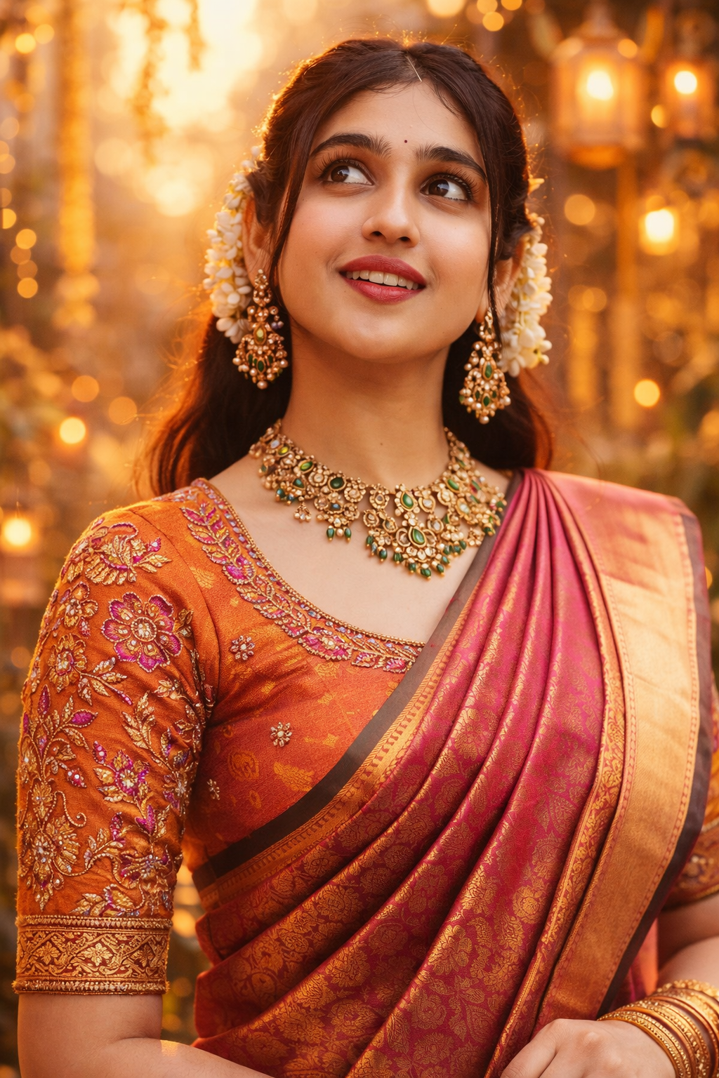7. Festive Saree Look with Golden Hour Prompt