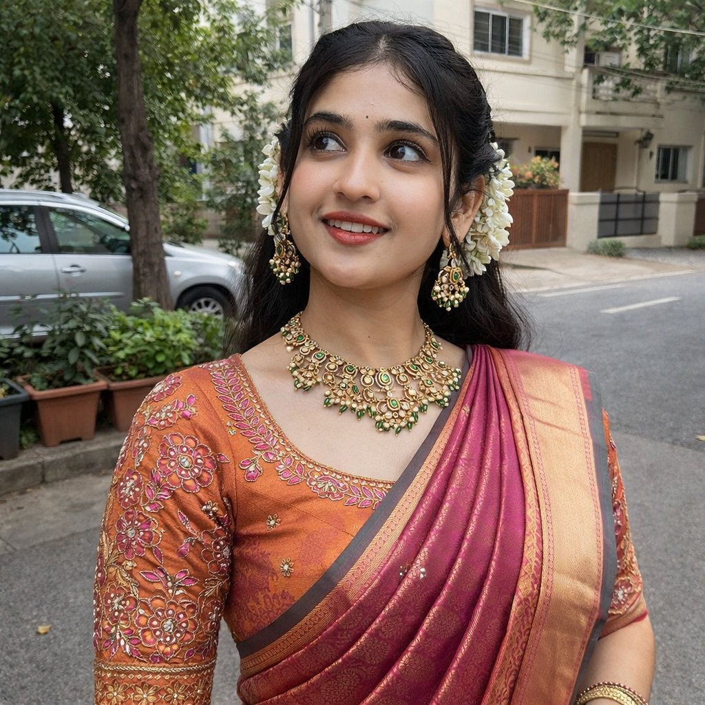 1. Traditional Silk Saree Look Prompt
